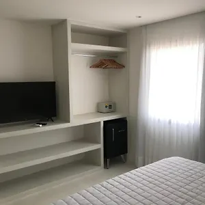 Os quartos do Girassóis - Quartos têm mini frigobar, cofre pessoal e TV de tela plana com canais via satélite, bem como banheiro separado e chuveiro.